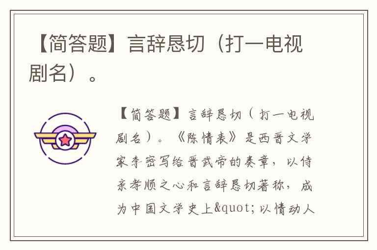 《陈情表》是西晋文学家李密写给晋武帝的奏章,以侍亲孝顺之心和言辞恳切著称,成为中国文学史上"以情动人"的典范之作。这个灯谜巧妙借用"言辞恳切"的语义特征,直指这篇千古名文,而"表"字又暗合奏章这一文体形式,形成双关妙趣。