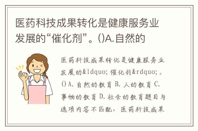 医药科技成果转化是健康服务业发展的“催化剂”。()A.自然的教育 B.人的教育 C.事物的教育 D.社会的教育