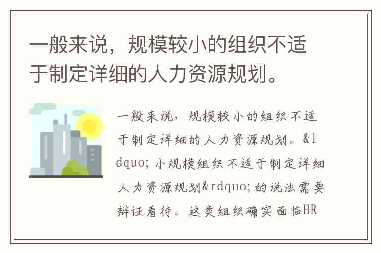 一般来说,规模较小的组织不适于制定详细的人力资源规划。