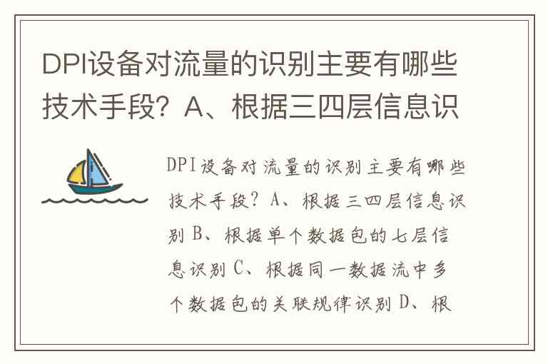 DPI设备对流量的识别主要有哪些技术手段?A、根据三四层信息识别 B、根据单个数据包的七层信息识别 C、根据同一数据流中多个数据包的关联规律识别 D、根据多个数据流的统计特征和连接行为识别