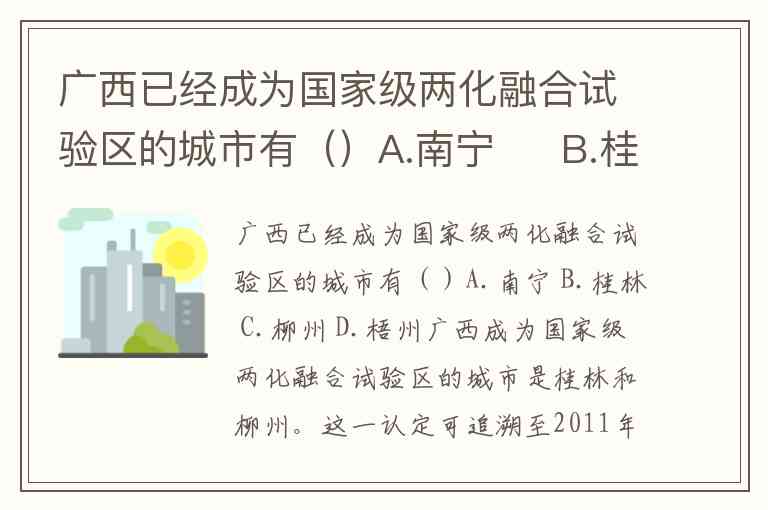 广西已经成为国家级两化融合试验区的城市有()A.南宁 B.桂林 C.柳州 D.梧州