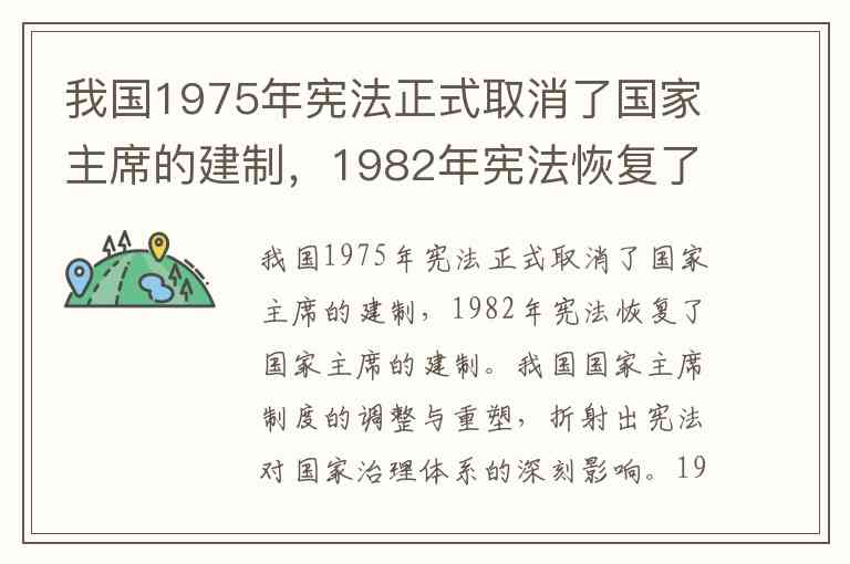 我国1975年宪法正式取消了国家主席的建制,1982年宪法恢复了国家主席的建制。