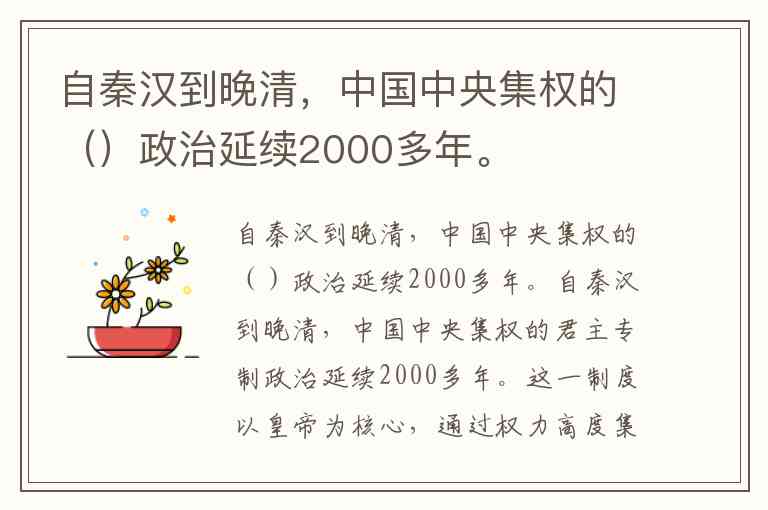 自秦汉到晚清,中国中央集权的()政治延续2000多年。