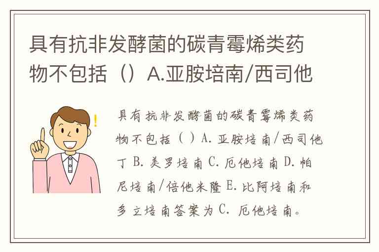 具有抗非发酵菌的碳青霉烯类药物不包括()A.亚胺培南/西司他丁 B.美罗培南 C.厄他培南 D.帕尼培南/倍他米隆 E.比阿培南和多立培南