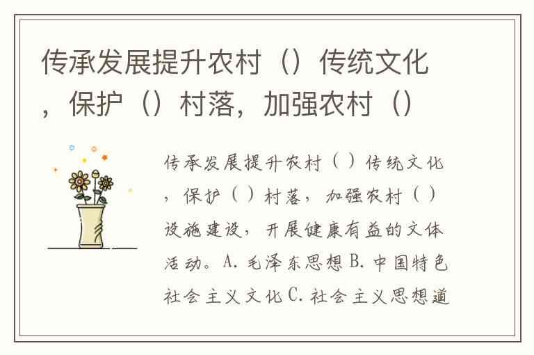 传承发展提升农村()传统文化,保护()村落,加强农村()设施建设,开展健康有益的文体活动。A.毛泽东思想 B.中国特色社会主义文化 C.社会主义思想道德 D.马克思列宁主义