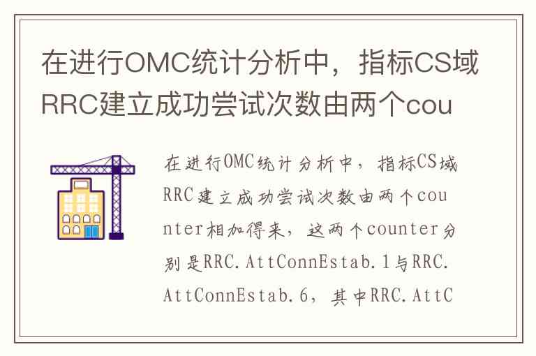根据OMC统计分析规范,CS域RRC建立成功尝试次数由两个核心计数器构成:RRC.AttConnEstab.1表示电路域业务相关的RRC连接建立尝试次数,对应因语音等传统CS业务触发的连接请求;RRC.AttConnEstab.6表示电路域紧急呼叫相关的RRC连接建立尝试次数,专门统计紧急业务场景下的连接请求。