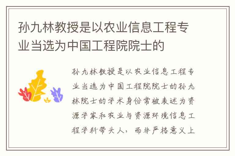 孙九林教授是以农业信息工程专业当选为中国工程院院士的