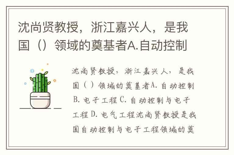 沈尚贤教授,浙江嘉兴人,是我国()领域的奠基者A.自动控制 B.电子工程 C.自动控制与电子工程 D.电气工程