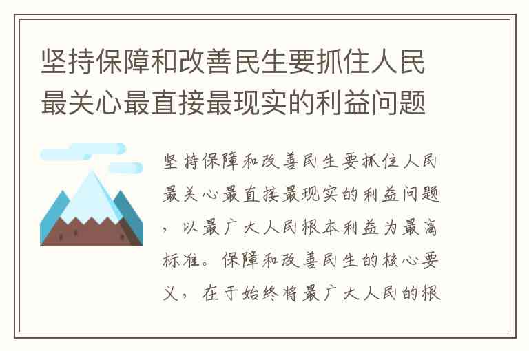 坚持保障和改善民生要抓住人民最关心最直接最现实的利益问题,以最广大人民根本利益为最高标准。