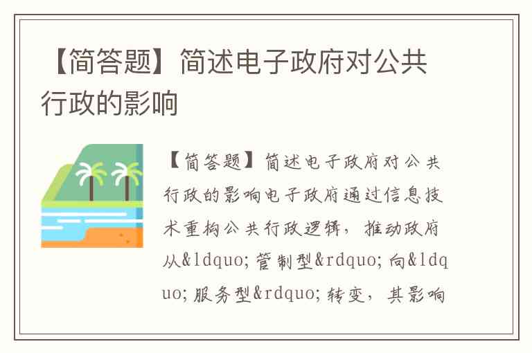 电子政府通过信息技术重构公共行政逻辑,推动政府从“管制型”向“服务型”转变,其影响渗透行政理念、结构、流程和能力四个维度。这一变革不仅是技术升级,更是治理范式的深层转型,既提升效率、降低成本,也重塑权力运行与政民关系。