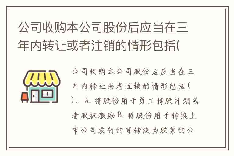 根据中国《公司法》及相关规定,公司收购本公司股份后需在三年内转让或注销的情形包括 员工持股计划与股权激励、转换可转换债券、维护公司价值及股东权益 三类场景。具体分析如下: