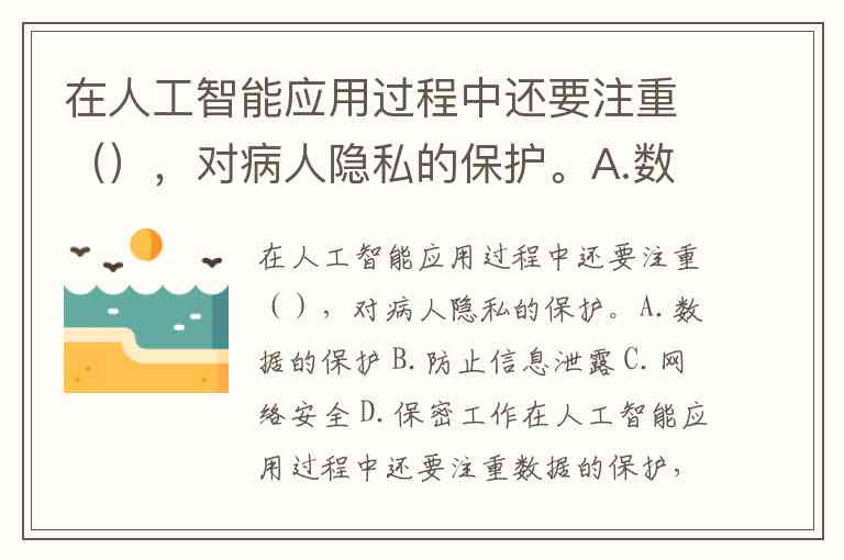 在人工智能应用过程中还要注重(),对病人隐私的保护。A.数据的保护 B.防止信息泄露 C.网络安全 D.保密工作