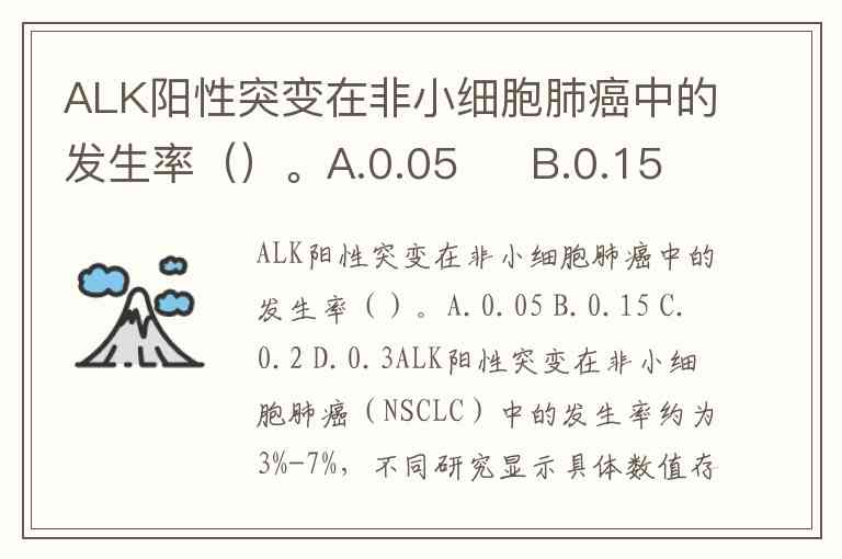 ALK阳性突变在非小细胞肺癌中的发生率()。A.0.05 B.0.15 C.0.2 D.0.3
