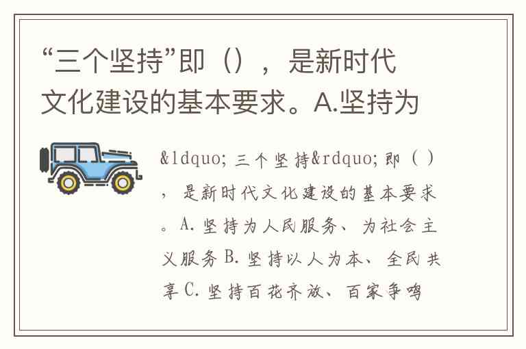 “三个坚持”即(),是新时代文化建设的基本要求。A.坚持为人民服务、为社会主义服务 B.坚持以人为本、全民共享 C.坚持百花齐放、百家争鸣 D.坚持科教兴国、大力发展科学技术 E.坚持创造性转化、创新性发展