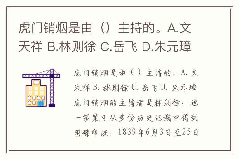 虎门销烟是由()主持的。A.文天祥 B.林则徐 C.岳飞 D.朱元璋