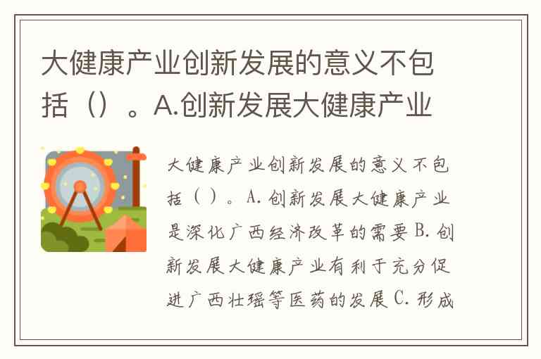 大健康产业创新发展的意义不包括()。A.创新发展大健康产业是深化广西经济改革的需要 B.创新发展大健康产业有利于充分促进广西壮瑶等医药的发展 C.形成智慧化的新型健康服务业 D.创新发展大健康产业有利于充分发挥广西的中药源优势