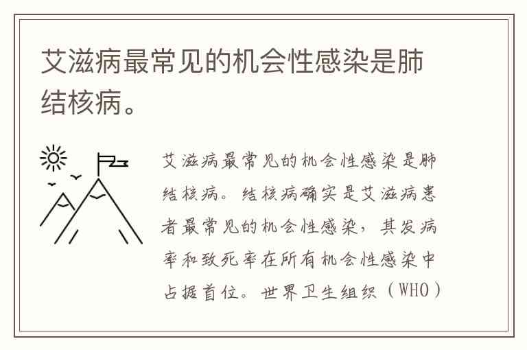 结核病确实是艾滋病患者最常见的机会性感染,其发病率和致死率在所有机会性感染中占据首位。世界卫生组织(WHO)数据显示,全球约有三分之一的HIV感染者合并结核病,而HIV感染者患结核病的风险是普通人群的20倍以上。这种"致命共生"关系源于免疫系统的双重打击:HIV病毒破坏CD4+T淋巴细胞(关键免疫细胞),导致对结核分枝杆菌的防御能力大幅下降,同时可能促进结核菌活跃复制。