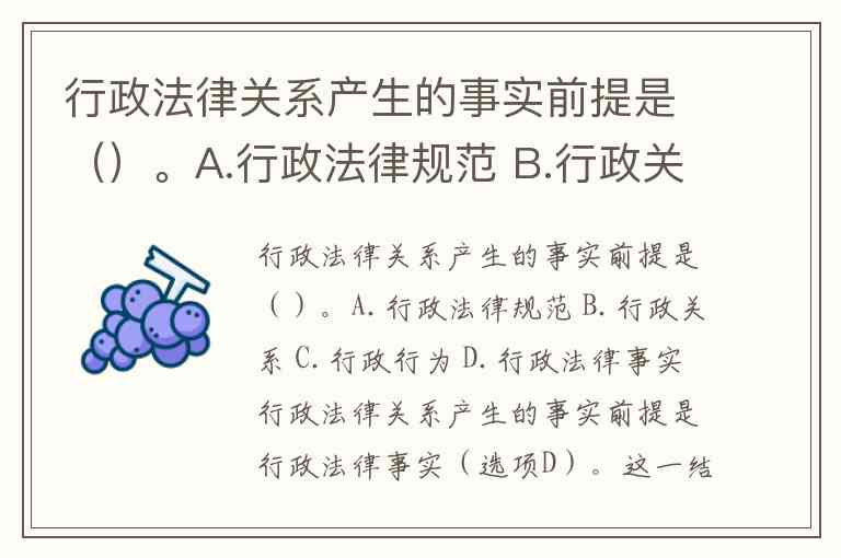 行政法律关系产生的事实前提是()。A.行政法律规范 B.行政关系 C.行政行为 D.行政法律事实