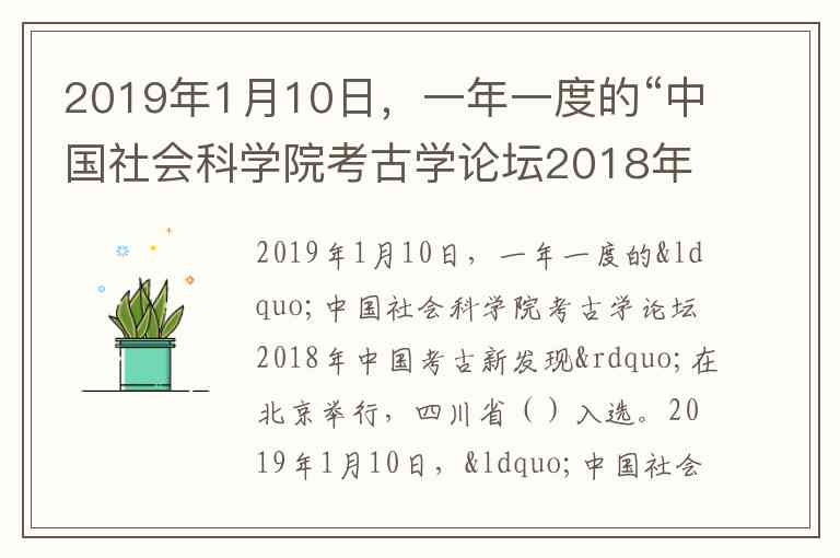 2019年1月10日,一年一度的“中国社会科学院考古学论坛2018年中国考古新发现”在北京举行,四川省()入选。