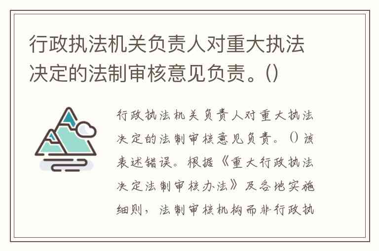 行政执法机关负责人对重大执法决定的法制审核意见负责。()