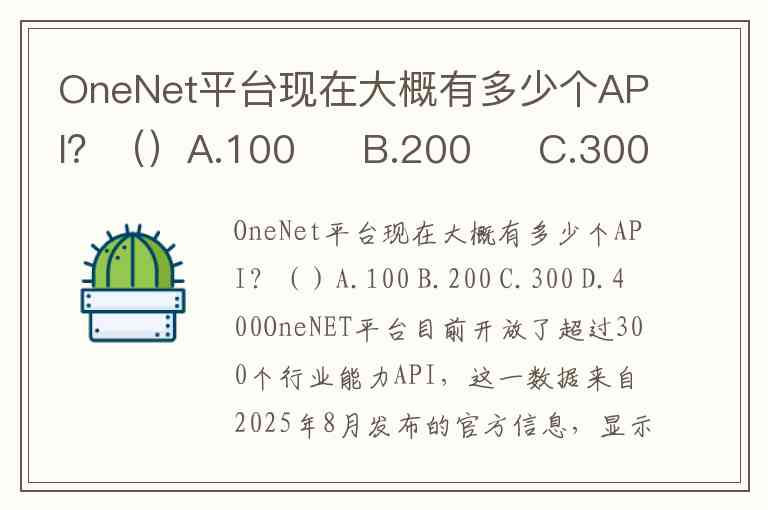 OneNet平台现在大概有多少个API?()A.100 B.200 C.300 D.400