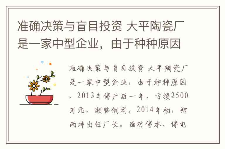 动态反馈,及时调整:决策执行中需跟踪效果并修正(如大平厂发现规模问题后立即改造窑炉,而非放任劣势)。