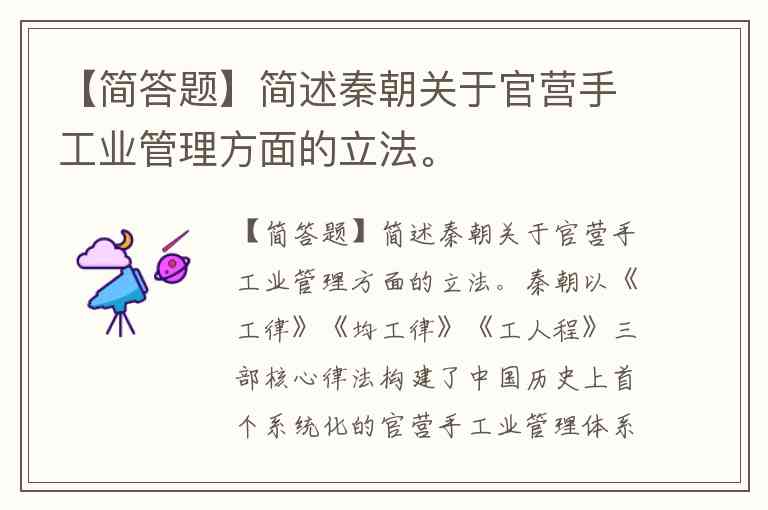 【简答题】简述秦朝关于官营手工业管理方面的立法。