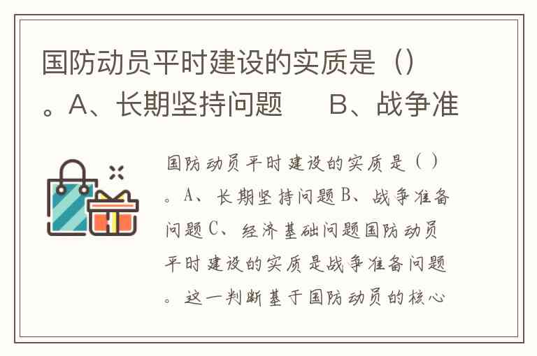 国防动员平时建设的实质是()。A、长期坚持问题 B、战争准备问题 C、经济基础问题