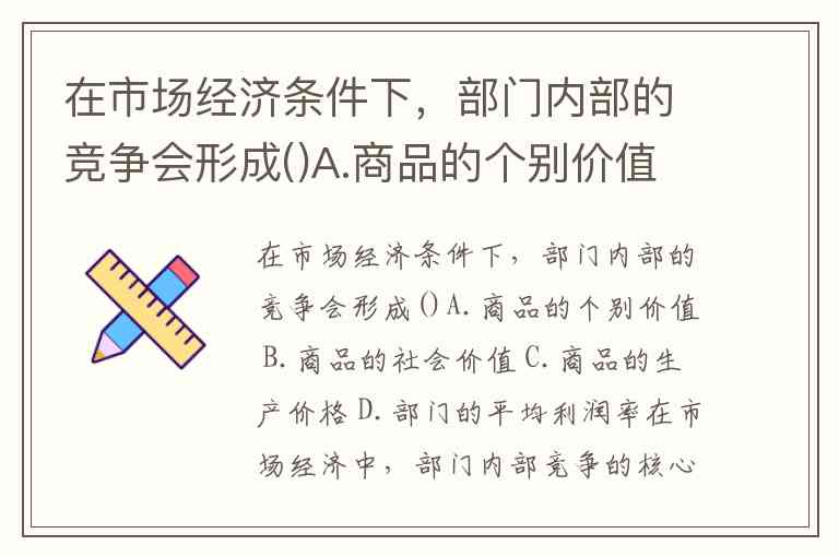 在市场经济条件下,部门内部的竞争会形成()A.商品的个别价值 B.商品的社会价值 C.商品的生产价格 D.部门的平均利润率