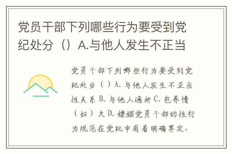 党员干部下列哪些行为要受到党纪处分()A.与他人发生不正当性关系 B.与他人通奸 C.包养情(妇)夫 D.嫖娼