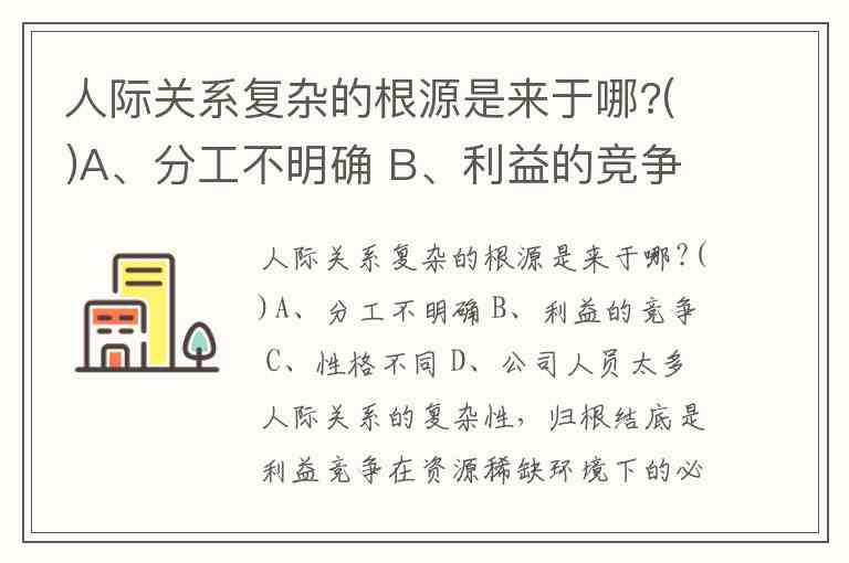 人际关系复杂的根源是来于哪?()A、分工不明确 B、利益的竞争 C、性格不同 D、公司人员太多