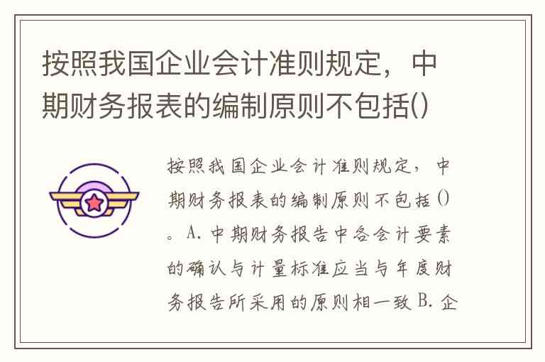 按照我国企业会计准则规定,中期财务报表的编制原则不包括()。A.中期财务报告中各会计要素的确认与计量标准应当与年度财务报告所采用的原则相一致 B.企业财务报告的频率不应当影响其年度结果的计量 C.对于周期性取得的收入,企业应当在发生时予以确认和计量,不应当在中期财务报表中预计或递延 D.对于会计年度中不均匀发生的费用,应当在中期财务报表中预提或待摊