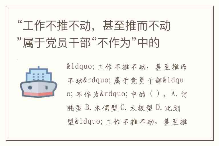 “工作不推不动,甚至推而不动”属于党员干部“不作为”中的()。A.打盹型 B.木偶型 C.太极型 D.比划型