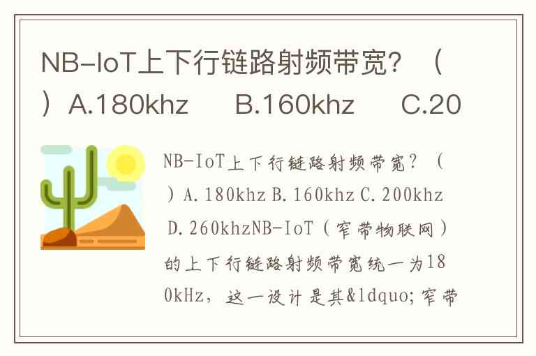 NB-IoT上下行链路射频带宽?()A.180khz B.160khz C.200khz D.260khz