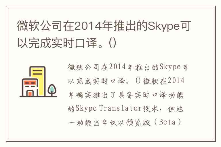 微软公司在2014年推出的Skype可以完成实时口译。()