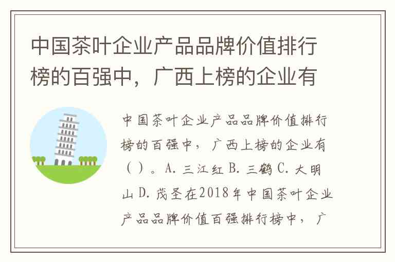 中国茶叶企业产品品牌价值排行榜的百强中,广西上榜的企业有()。A.三江红 B.三鹤 C.大明山 D.茂圣