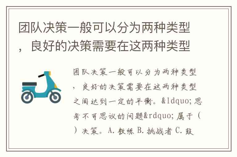 团队决策一般可以分为两种类型,良好的决策需要在这两种类型之间达到一定的平衡。“思考不可思议的问题”属于()决策。A.教练 B.挑战者 C.鼓励者 D.导师