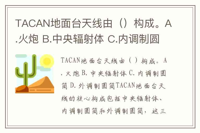 TACAN地面台天线的核心构成包括中央辐射体、内调制圆筒和外调制圆筒,这三个部件共同协作实现战术空中导航系统的信号收发与方位测量功能。火炮(选项A)与天线结构无关,属于明显干扰项。
