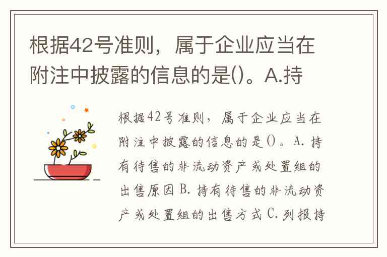 根据42号准则,属于企业应当在附注中披露的信息的是()。A.持有待售的非流动资产或处置组的出售原因 B.持有待售的非流动资产或处置组的出售方式 C.列报持有待售的非流动资产或处置组的分部 D.终止经营的资产或处置组确认的减值损失及其转回金额