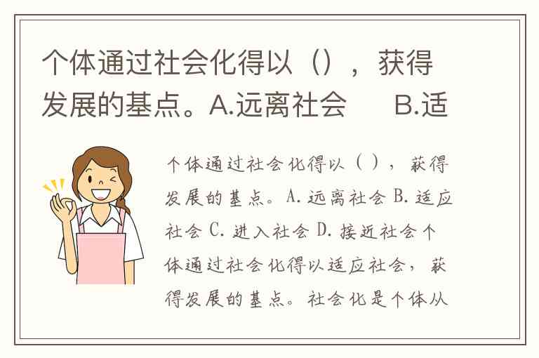 个体通过社会化得以(),获得发展的基点。A.远离社会 B.适应社会 C.进入社会 D.接近社会