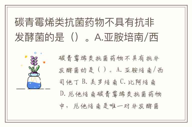 碳青霉烯类抗菌药物不具有抗非发酵菌的是()。A.亚胺培南/西司他丁 B.美罗培南 C.比阿培南 D.厄他培南