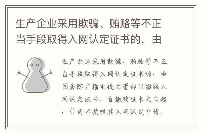 生产企业采用欺骗、贿赂等不正当手段取得入网认定证书的,自国务院广播电视主管部门撤销证书之日起,3年内不受理其入网认定申请。这一规定明确记载于《广播电视设备器材入网认定管理办法》,旨在严厉打击资质获取中的违法行为,维护行业准入秩序。