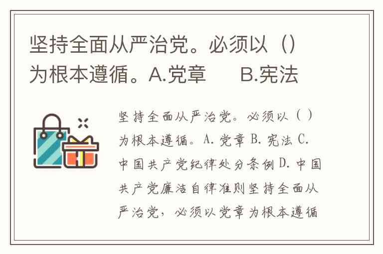坚持全面从严治党。必须以()为根本遵循。A.党章 B.宪法 C.中国共产党纪律处分条例 D.中国共产党廉洁自律准则