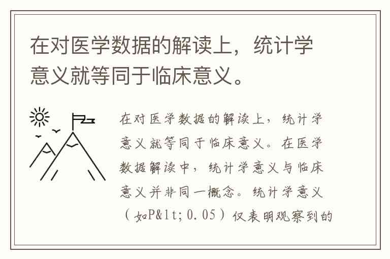 在对医学数据的解读上,统计学意义就等同于临床意义。