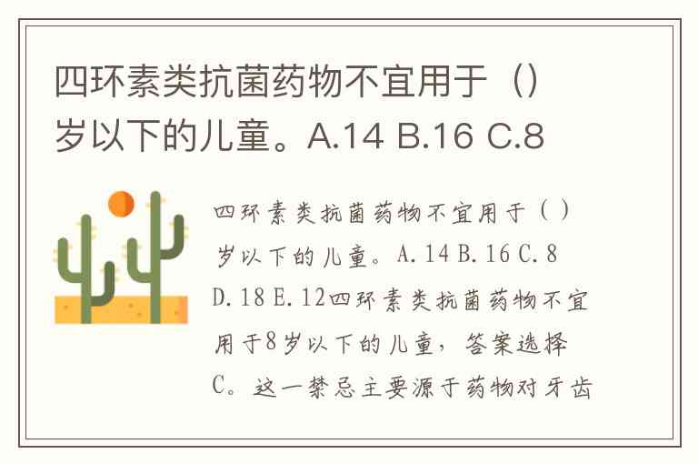 四环素类抗菌药物不宜用于()岁以下的儿童。A.14 B.16 C.8 D.18 E.12
