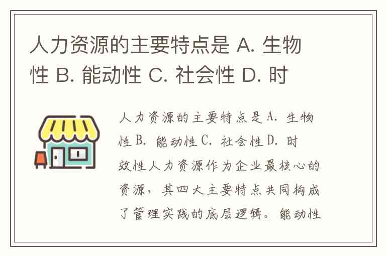人力资源的主要特点是 A. 生物性 B. 能动性 C. 社会性 D. 时效性
