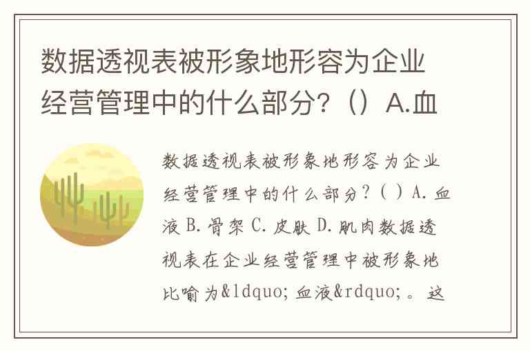 数据透视表被形象地形容为企业经营管理中的什么部分?()A.血液 B.骨架 C.皮肤 D.肌肉