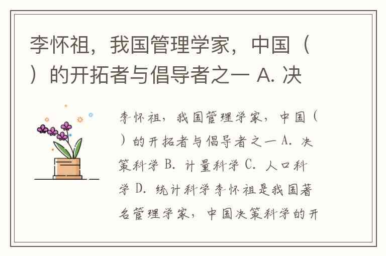 李怀祖,我国管理学家,中国()的开拓者与倡导者之一 A. 决策科学 B. 计量科学 C. 人口科学 D. 统计科学