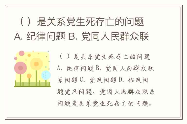 ( )是关系党生死存亡的问题 A. 纪律问题 B. 党同人民群众联系问题 C. 党风问题 D. 作风问题