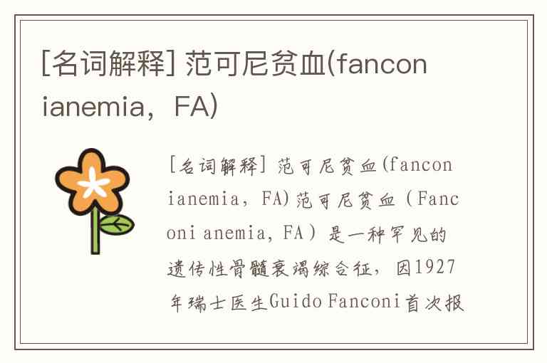 [名词解释] 范可尼贫血(fanconianemia,FA)